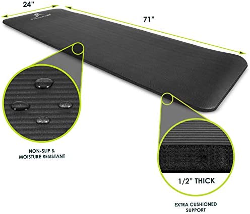 VERSATILE – Ideal for many fitness purposes, such as Pilates & yoga, the extra-large 71- by 24-inch and 1-inch thick mat fits any user