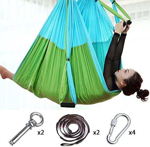 Professional design: a multi-functional anti-gravity yoga hammock made with high-intensity parachute fabricUnique features: large and comfortable, lightweight and breathable fabric, triple height adjustmentHealth Benefits: Use it to decompress the spinal cord and enhance the strength of the upper limbs. Regular use can enhance the body and maintain a healthy body versatility: not only as a yoga hammock, but also as a swing chair, when the longest part of the middle Take it out independently, you can hang it on the tree and use it as an ordinary hammock. Accessories:a variety of packages are available, please purchase as neededMaterial: 210T nylon taffta (also called parachute cloth), Expansion screw rings material: 304 stainless steel, Extension belt material: high-strength polyesterPacking: with the same color storage bag