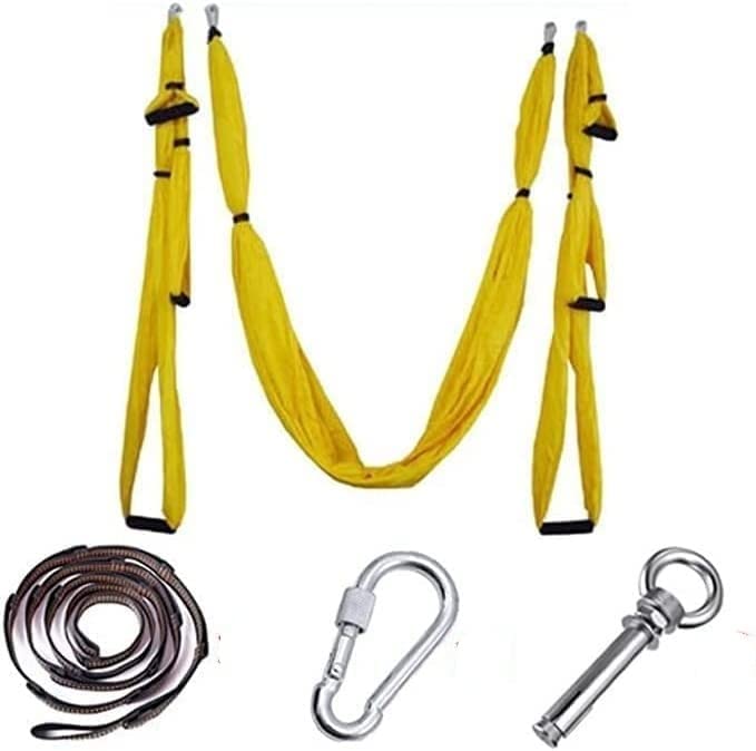 Professional design: a multi-functional anti-gravity yoga hammock made with high-intensity parachute fabricUnique features: large and comfortable, lightweight and breathable fabric, triple height adjustmentHealth Benefits: Use it to decompress the spinal cord and enhance the strength of the upper limbs. Regular use can enhance the body and maintain a healthy body versatility: not only as a yoga hammock, but also as a swing chair, when the longest part of the middle Take it out independently, you can hang it on the tree and use it as an ordinary hammock. Accessories:a variety of packages are available, please purchase as neededMaterial: 210T nylon taffta (also called parachute cloth), Expansion screw rings material: 304 stainless steel, Extension belt material: high-strength polyesterPacking: with the same color storage bag
