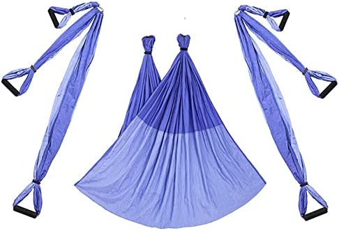 HomeApparatusQueenLine Full Set 6 Handles Anti-Gravity Aerial Yoga Hammock Flying Swing Trapeze Yoga Inversion Exercises Device Home Gym Hanging Belt Deep Blue