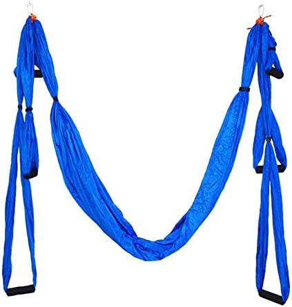 QueenLine Full Set 6 Handles Anti-Gravity Aerial Yoga Hammock Flying Swing Trapeze Yoga Inversion Exercises Device Home Gym Hanging Belt Deep Blue
