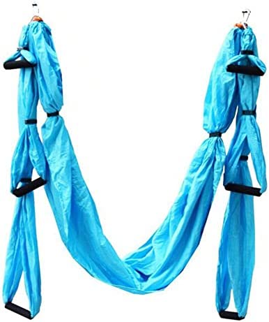 QueenLine Full Set 6 Handles Anti-Gravity Aerial Yoga Hammock Flying Swing Trapeze Yoga Inversion Exercises Device Home Gym Hanging Belt Sky Blue