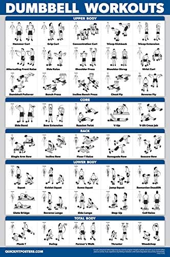 QuickFit 3 Pack – Dumbbell Workouts + Bodyweight Exercises + Stretching Routine Poster Set – Set of 3 Workout Charts