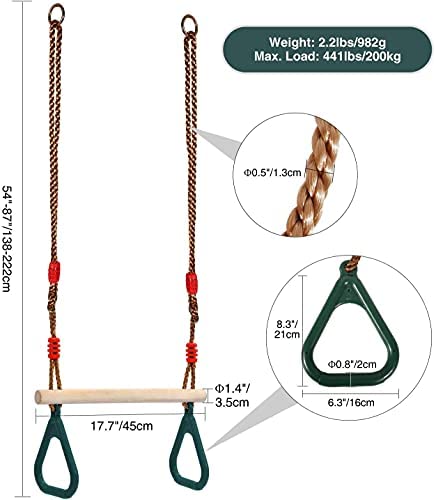 Material: Made of sturdy plastic handles, high quality swing bar and multi-ply nylon ropes. Non toxic, odorless, eco friendly plastic. Smooth surface without edges and burrs, no scratches on the little ones’ hands