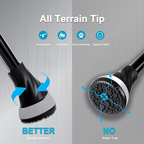 PIVOTING & SHOCK ABSORBING: Cutting edge patented technology combines these 2 in 1. All terrain pivoting & slip-resistant base provides superior stability and ground contact on uneven surfaces. Multilayer rubber structure absorbs shocks and dampens the impact on the joints and muscles from shocks. Entire base system maximizes the safety in daily mobility.