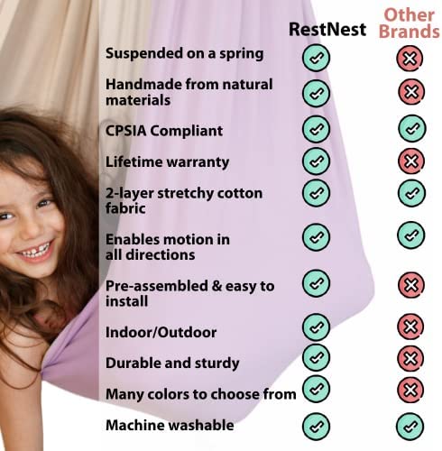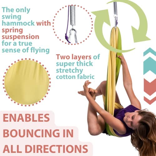 IDEAL AS A THERAPY SWING. The spring’s vertical motion, the pleasant soft fabric, and the variety of calming light colors make this cuddle sensory swing the best choice for children with ADHD and autism.