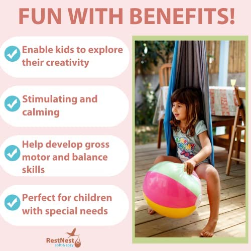 This indoors hammock will KEEP ANY CHILD AWAY FROM SCREENS for long hours of physical activity while developing balance, coordination and confidence. Kids also like to use it as a cozy private nest swing to rest and relax.