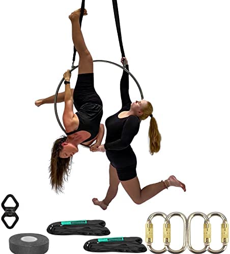 This is a complete aerial hoop setup. Ready to hang and start performing. It comes with a lyra/aerial ring, attachment carabiners, a swivel, and 3-foot long spanset. load tested to 300kg.