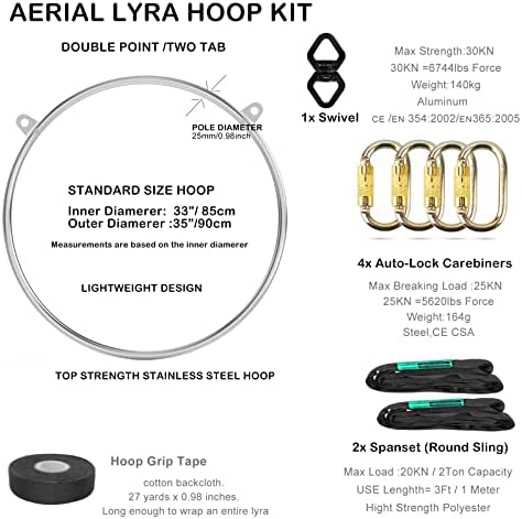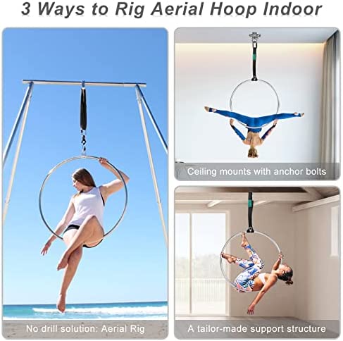 【Premium Aerial Ring hardware set】: Runner Deer Aerial Ring Made Of High Quality Stainless Steel With Powder Coating, Durable And Anti-Rust. Thick Tabs That Are Professional Welded To Withstand The Stress That Aerial Arts Require. Higher Strength Heavy-Duty Accessories: 1 Meters Spanset (2 Tons), O-Ring(25KN) And 360° Roatation Swivel(30KN). 25 Meters Hoop Tape (Tape The Aerial Acrobatic Hoop So That Will Not Hurt Hand.)