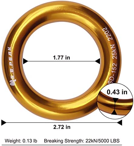 HomeApparatusS.E.PEAK 22kN Aluminum Rappel Ring, Perfect Tension O-Ring, Connection Ring for Rock Climbing, Arborist, Hammock, Rescue, Slackline, Gold