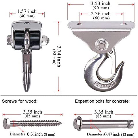 HomeApparatusSELEWARE Silent Swing Hanger Stainless Steel Swing Set Hook for Porch Swing Hammok Chair Yoga Silk, Ceiling Mount Swing Anchor for Olympic Rings Climbing Ropesw