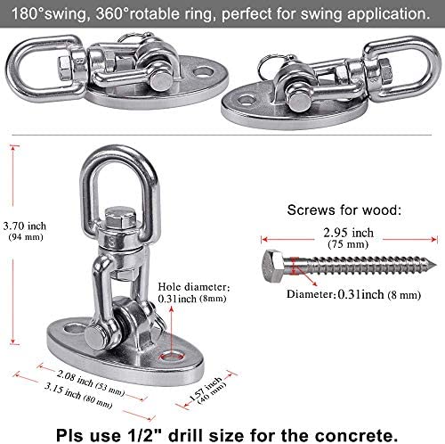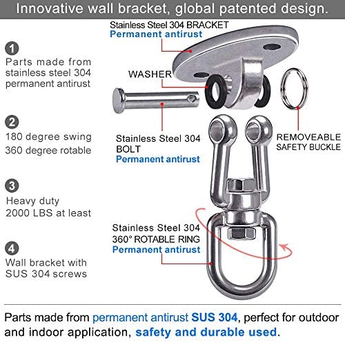 360° swivel + 180° swing: Innovative design, creating a wider range of using, like playgrounds, swings, porch swings or hammock swings.