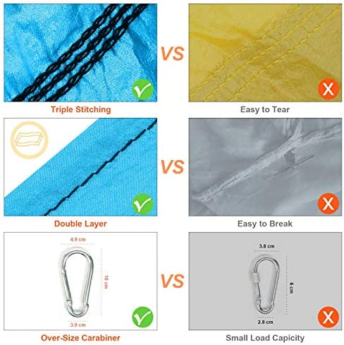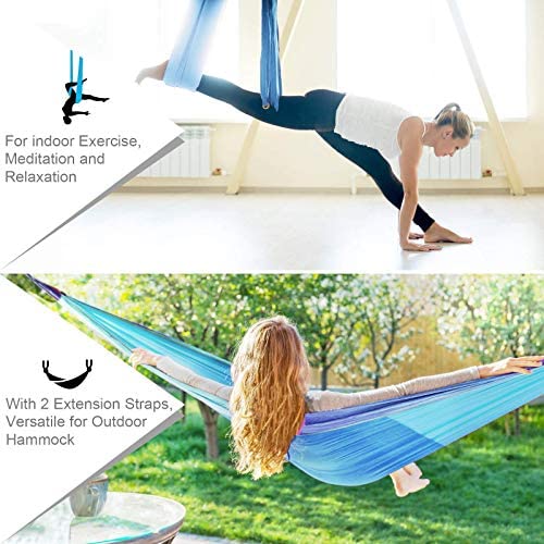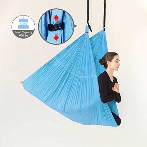 QUALITY MATERIAL – Sotech yoga swing hammock is made of durable, ultra soft nylon taffeta, lined with double layers and triple interlock stitching tested max load bearing up to 600 lb(272 kg). All the aerial silks and materials are nontoxic – no lead. You can sit and cocoon comfortably in the hammock as it conforms to your body contour and provides generous width.