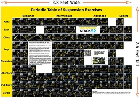 MASSIVE: The Periodic Table of Suspension Exercises is 45 x 31 inches. It contains 118 different exercises for the TRX arranged horizontally by difficulty and vertically by the muscle group worked.