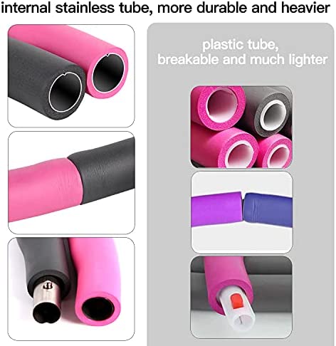 💪🥇WEIGHTED HOOP: THIS PRODUCT IS MUCH HEAVIER THAN PLASTIC HOOP. IT IS 3LBS ITSELF, PLUS YOU CAN ADD ADDITIONAL WEIGHT BY INSERTING RICE, STEEL BALLS INTO THE TUBES.