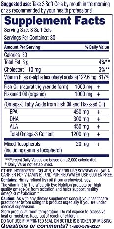 HomeSupplementsTheraTears 1200mg Omega 3 Supplement for Eye Nutrition, Organic Flaxseed Triglyceride Fish Oil and Vitamin E, 90 Count