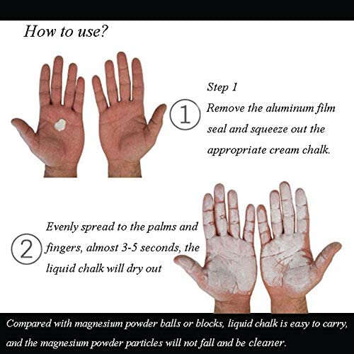Liquid Training Chalk is a necessity for all kinds of athletic/grip based training! WHY LIQUID CHALK? Unlike regular lifting/training chalk, lasts longer than regular chalk. The constant gripping and re-gripping of barbells or equipment during training causes regular chalk to progressively wear off after a few sets (personally experienced this for years). Simply put, Depending on how long you train for, 1 re-application during an extremely long workout might be necessary, As you might have experienced…The use of regular chalk in gyms is frowned upon by staff because of the mess it can leave not only on the floor but on the barbells. Ingredients: Magnesium carbonate,thickener Diresctions for use: shake bottle hard.Put a coin-sized dollop on your palms and gently spread on your palms and fingers.Allow to dry fully.replace lid after use. vital information: Dont apply to unbroken skin or near the eyes Test liquid chalk on a small patch of skin.In the vent of an adverse reation. cease use immediatly.Do not take internally.after use,wash off with warm soapy water.store out of reach of Children.