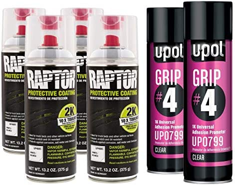 U-POL Raptor 2K White Spray-On Truck Bedliner Aerosol #4 Grip Adhesion Kit 4885 (4) + 799 (2)