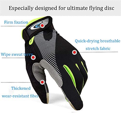 Gloves use of non-slip silicone material for durability against turf, grass, mud & more, more rotation on release which can improve accuracy, speed and distance of your throw, perfect for ultimate flying disc or any disc sport.