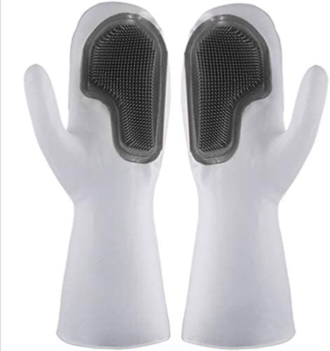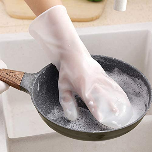 Long sleeve silicone glove for waterproof, anti-slip, flexibility. Extended silicone bristles covered on palms and fingers, super easy to foam and clean, water and oil resistant, speedy natural dry, No deformation.