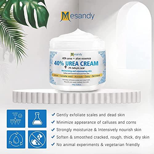 【NEW UPGRADED, HIGHLY EFFECTIVE FORMULA, MAXIMUM STRENGTH TO RESTORE SKIN BARRIER】: Mesandy Urea Foot Cream inject 2% salicylic acid, gently removing skin cutin and dead skin, clinical trials have confirmed 2% salicylic acid has a certain therapeutic effect on seborrheic dermatitis and psoriasis; 40 percent fortified urea promotes the absorption of moisture in the stratum corneum, enhancing hydration, improving cell renewal, resisting hand and foot cracking. Restores the skin barrier.