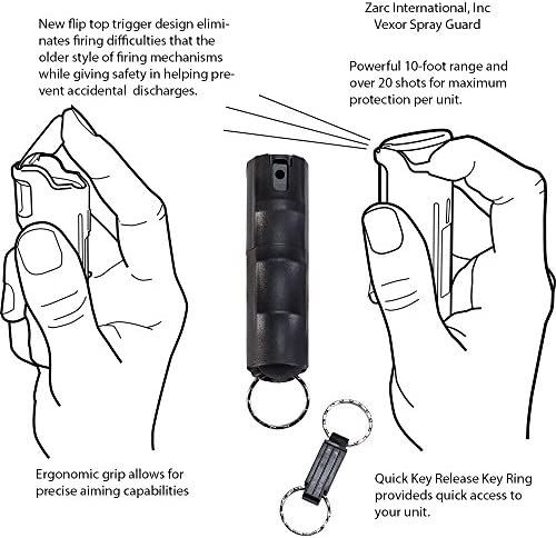 VEXOR Pepper Spray Gel—Police Strength—Flip-Top & Finger Grip—Quick Release Key Ring—20+ Shots—10-12 Ft. Range—5 Colors