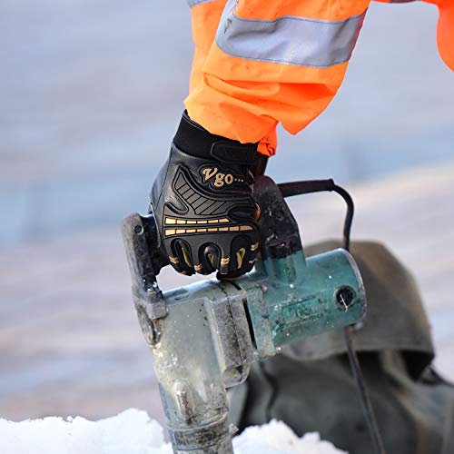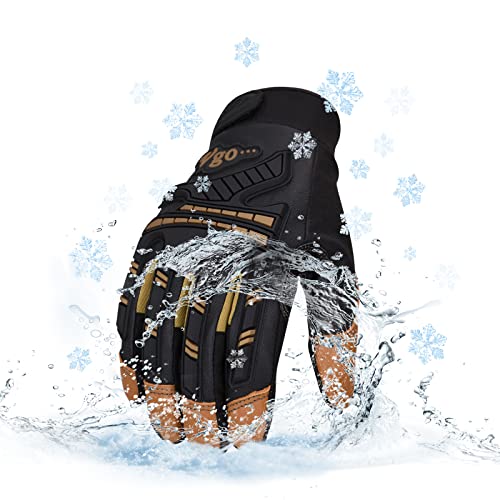 Vgo 1-Pair -4℉ or above Winter Waterproof High Dexterity Heavy Duty Mechanic Glove, Rigger Glove, Anti-vibration, Anti-abrasion, Touchscreen (Size L, Brown, GA8954FW)