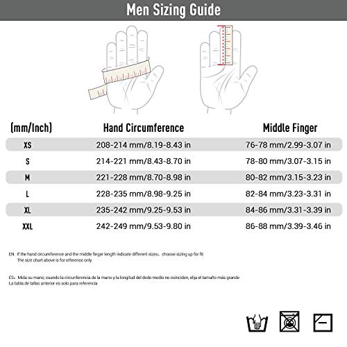 Premium genuine goat leather both back and palm provides comfort and dexterity for all day wear; Dual-layer palm reinforcement padding with neoprene provides excellent durability and absorbs vibration; Touchscreen compatible design on thumb and index/middle fingertips for smart phone control