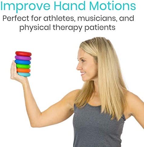 STRENGTHENS GRIP AND IMPROVES DEXTERITY: Hand exercise rings build strength in the fingers, hands, wrist and forearms. Varied activities, including crushing, pinching and extensions work to improve the dexterity of both the fingers and hands. Perfect for athletes, musicians and physical therapy patients.