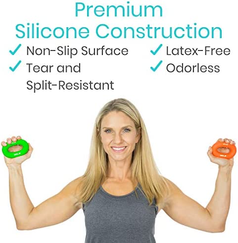 DURABLE NONSLIP SILICONE CONSTRUCTION: Hand grip strengtheners are constructed with a premium silicone material that is odorless and latex free. The nonslip rings are also tear and crack resistant for long-term use.