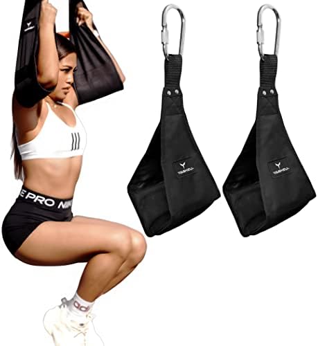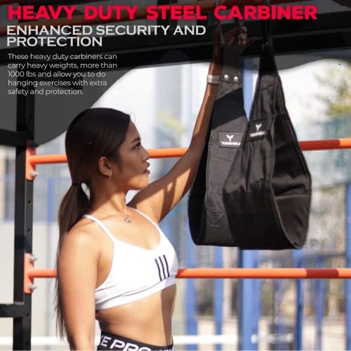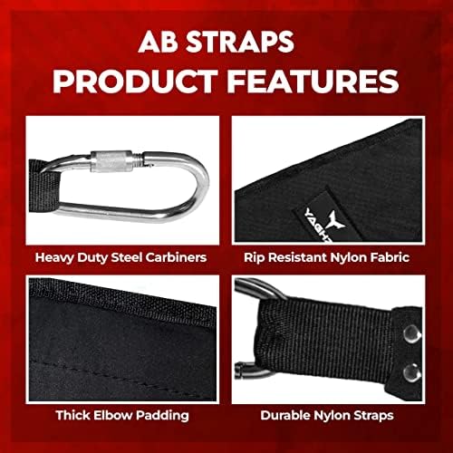 PREMIUM QUALITY MATERIALS : Yaghzu hanging ab strap are designed with safety, security, and durability in mind. We have made this ergonomic design ab straps with premium rip-resistant nylon fabric that can carry heavy weights and never fails during workouts. Unlike other abdominal straps in the market that uses cheap lightweight carabiners, these arm straps for pull up bar uses heavy-duty steel carabiner that are huge and can hold more than 1000 pounds