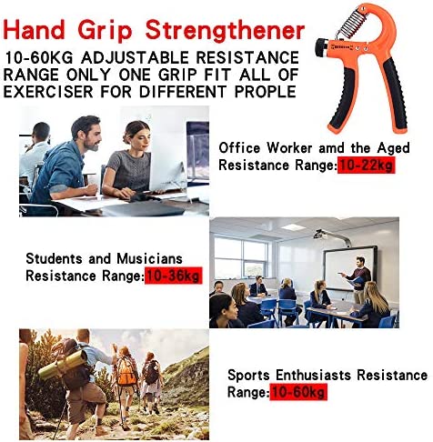 HomeGripYESIMET 2 Pack Hand Grip Strengthener, Finger Grip Exerciser, Adjustable Resistance 22-132Lbs (10-60kg), Strength Trainer, Hand Squeezer, Forearm Grip Workout for Athletes Pianist