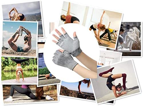 Features: -Rubber particles on the surface provides a non-slip surface anytime, anywhere to increase balance and stability. -Fingerless design allows for better flexibility of your fingers. -Can be used to safely practice without a mat or with a mat for added grip. -Non-Slip gloves mostly used for yoga, pilates, cycling, fitness, etc. -Glove size: One Size Fits Most for women and men. -Material: 80% cotton and 20% polyester. -Breathable, durable and sweat absorbent.
