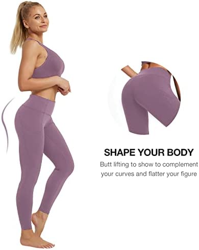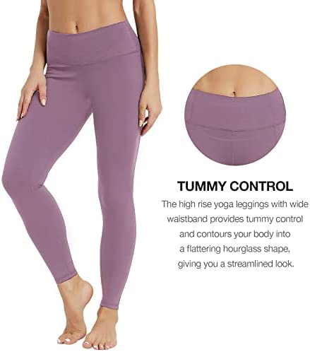 The HIGH RISE yoga leggings with wide waistband provides TUMMY CONTROL and contours your body into a flattering HOURGLASS SHAPE , giving you a STREAMLINED LOOK . Exceptional stay in place ELASTIC WAISTBAND that is fabulous, stylish, and appropriate, even though the leggings are up, and the high waist stays up well.